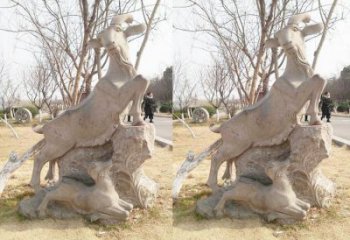 漢白玉山羊雕塑,裝點精美庭院
