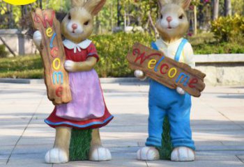 花園里的玻璃鋼兔子雕塑——只采不偷