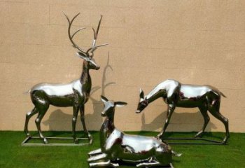 不銹鋼戶外園林景觀梅花鹿抽象雕塑