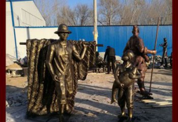 仿銅玻璃鋼捕魚父子小品