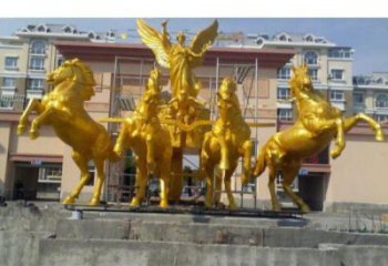 大型玻璃鋼仿銅阿波羅展翅景觀雕塑戶外園林馬群