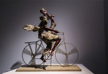 不銹鋼彩繪騎自行車人物雕塑