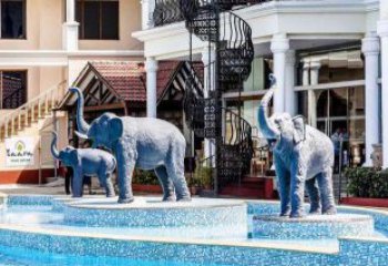 大象草坪雕塑是一種以大象為原型的雕塑,它以仿銅玻璃鋼材料制作而成,是一件小品,具有很高的審美價值。