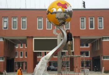 白鋼鏤空地球儀雕塑,為公園增添創意裝飾